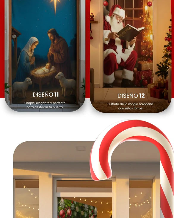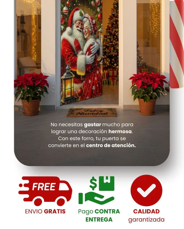 🎅 Transforma tu entrada en segundos: Coloca la funda fácilmente y cambia por completo el aspecto de tu puerta, dándole un toque navideño espectacular sin necesidad de herramientas ni adhesivos.
