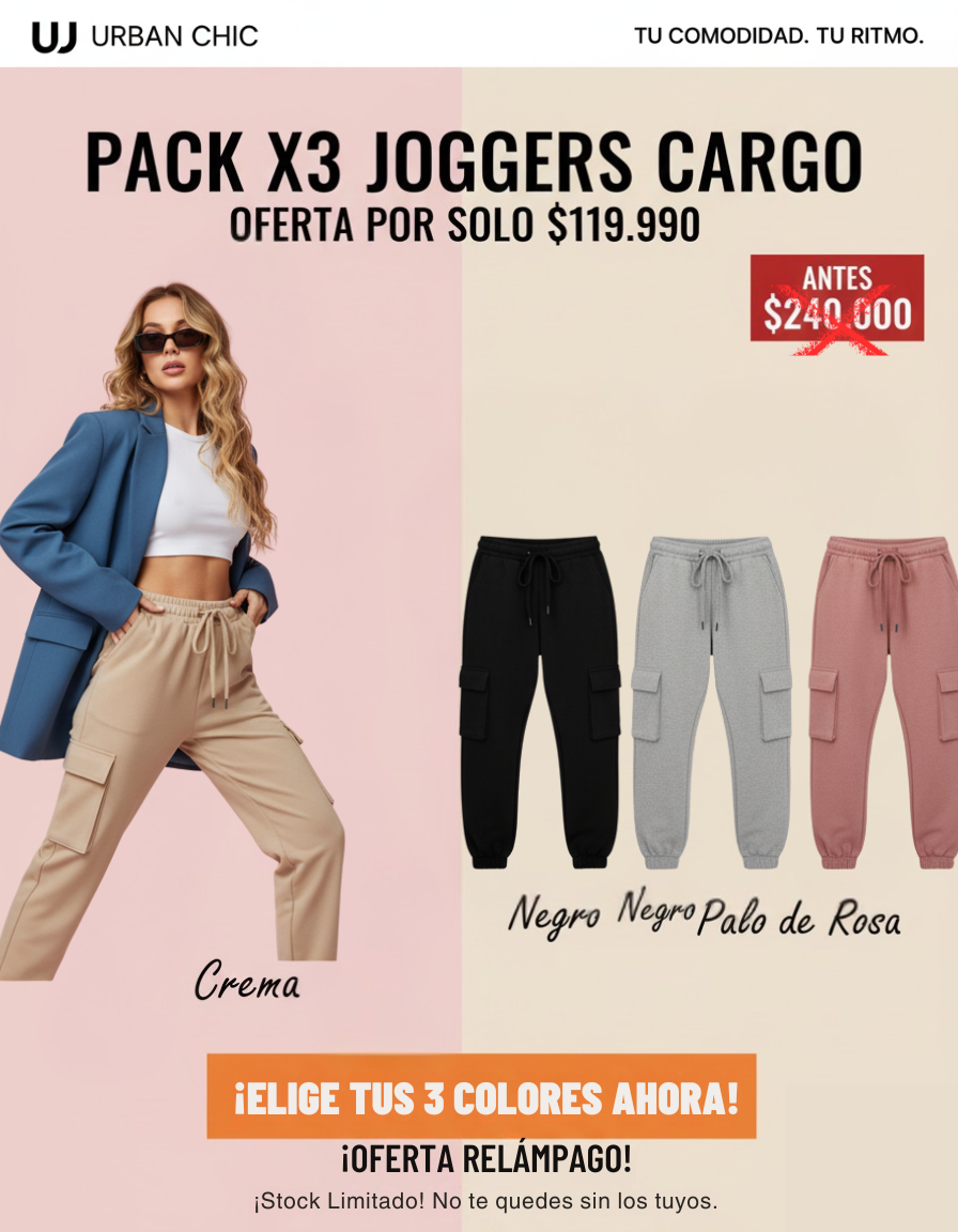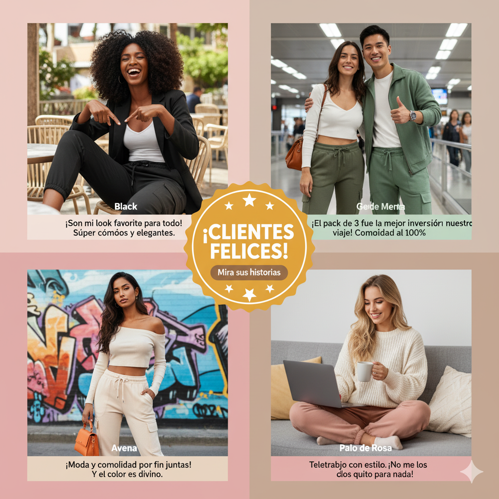 El Pack de 3 es nuestra mejor oferta. Al elegir el pack, obtienes un descuento significativo (mencionar el porcentaje o el valor del ahorro) y aseguras tener el color perfecto (Midnight Chic, Nube de Lino, Rosé Desayuno) listo para cualquier ocasión: uno para salir, uno para el gimnasio y otro para el relax.