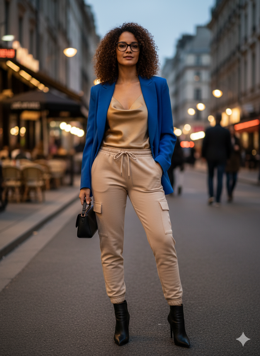 ¡Absolutamente! Ese es el diseño de este jogger. Su estilo cargo con puños ajustados y tejido de calidad permite un look"casual-chic" perfecto. Puedes combinarlos con tacones o un blazer para elevar el look para el trabajo o salidas, o con zapatillas para un estilo urbano.